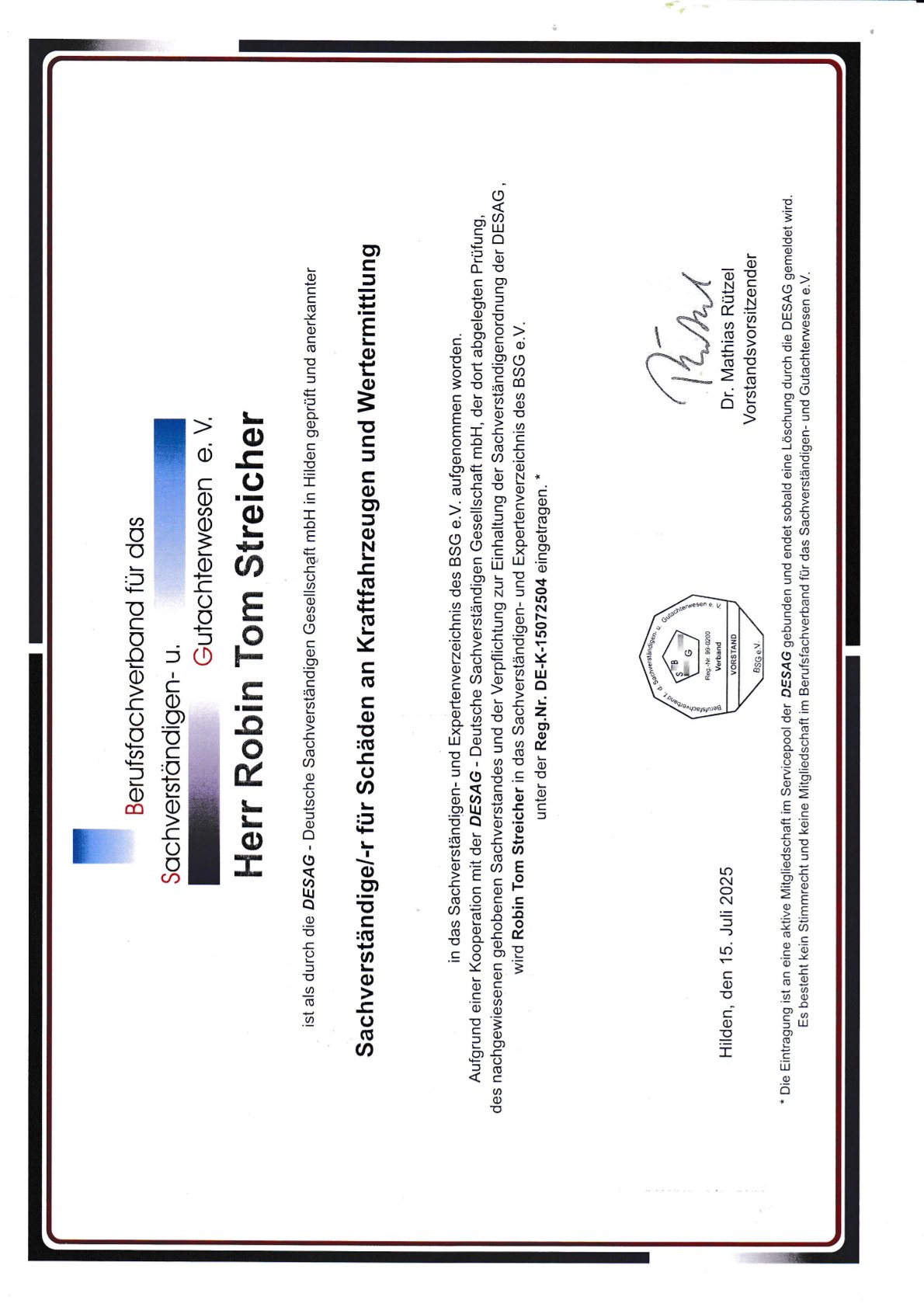 Gerade bei einem unverschuldeten Unfall empfehle ich ausdrücklich, ein detailliertes Schadensgutachten von einem erfahrenen und unabhängigen Gutachter erstellen zu lassen, um Ihre Schadensersatzansprüche vollständig, transparent und rechtssicher zu dokumentieren. Nur durch ein professionelles Gutachten wird der gesamte Schadenumfang erfasst und eine faire Regulierung gewährleistet.